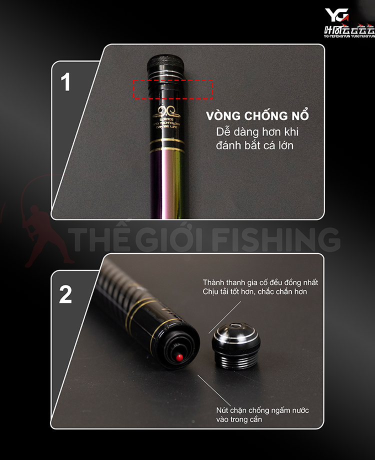 -Thiết kế thông minh, chống bó kẹt lóng khi ra cần, vòng chống nổ chất liệu hợp kim cao cấp