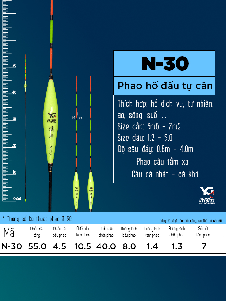 Phao hố đấu tự cân N-30, Phao chuyên câu cá rô, cá chép.