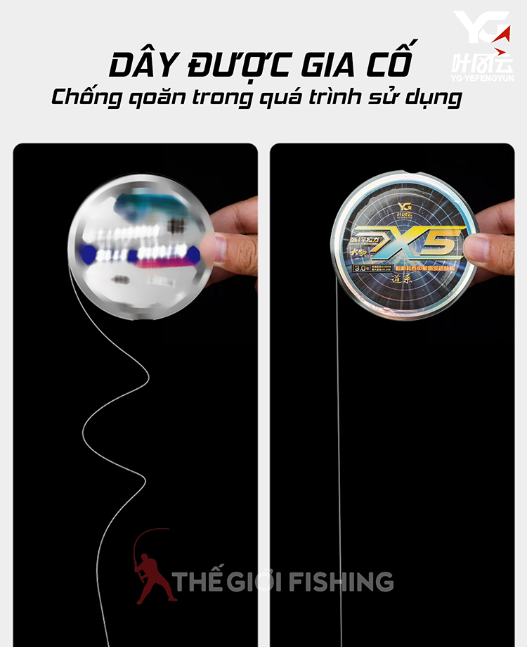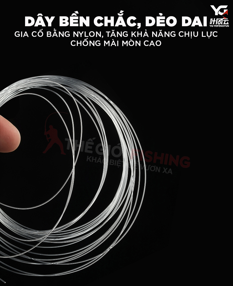 Cước mềm, mịn, sử dụng vật liệu chất lượng cao kết hợp công nghệ mới giúp tăng tính linh hoạt , chống mài mòn, chống lão hóa, tải tĩnh và tải nút thắt siêu khoẻ