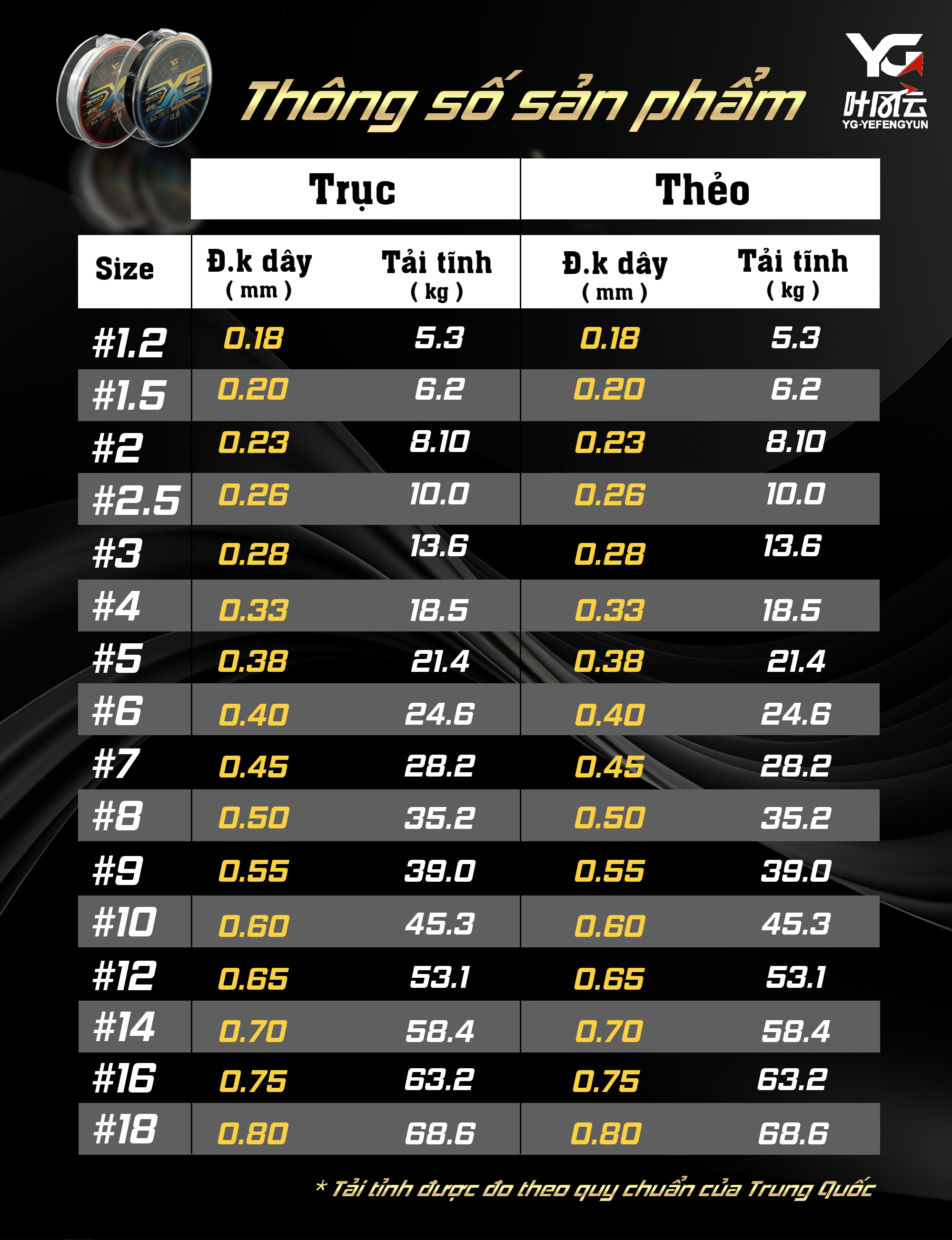 Size thẻo: 1.2, 1.5, 2, 2.5, 3.